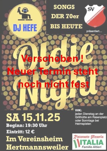 Dank Versorgungsteam und der Fußballjugend findet seit 2024 wieder die legendäre Oldie Night im Vereinheim statt.